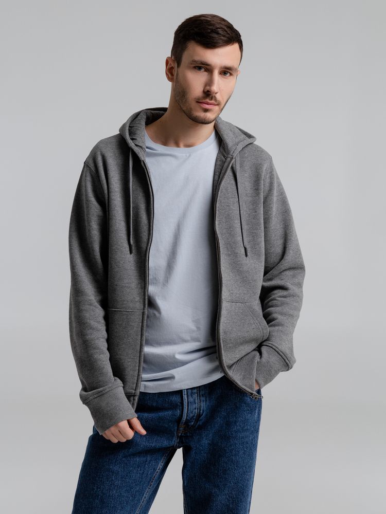 Толстовка на молнии с капюшоном унисекс King, темно-серый меланж, размер 3XL