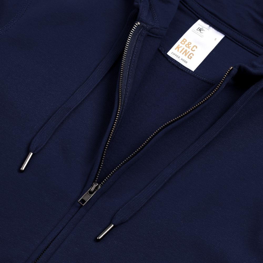 Толстовка на молнии с капюшоном унисекс King, темно-синяя, размер S с логотипом компании - отличный способ заявить вашу корпоративную идентичность.