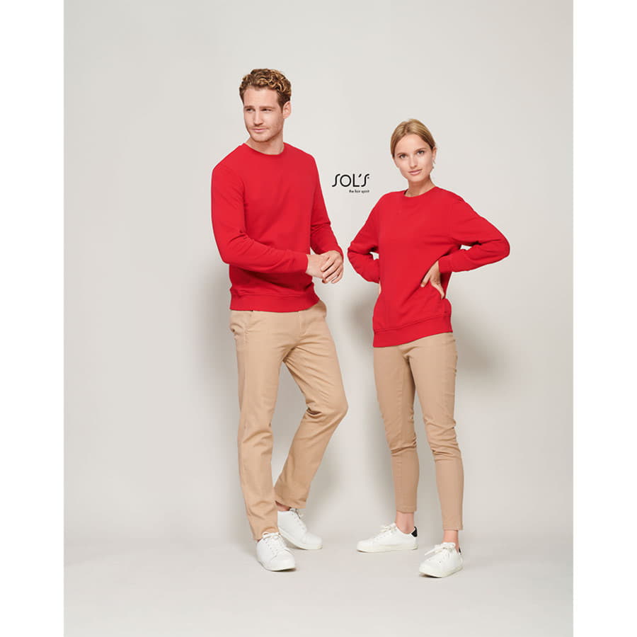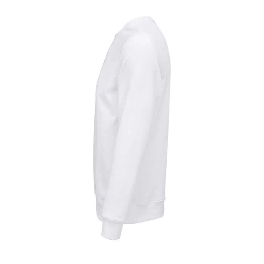 Свитшот унисекс без начеса (петлевой футер) выполнен из 80% органического хлопка и 20% переработанного полиэстера, плотностью 280 г/м2.