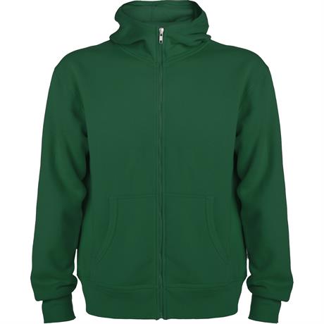 Толстовка с капюшоном, высоким воротником и молнией. Окантовка капюшона и карманов из ткани в рубчик. Карман-кенгуру. Манжеты рукавов и низ в рубчик 2 x 2.*Съемная этикетка.