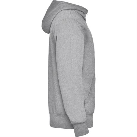Толстовка с капюшоном, высоким воротником и молнией. Окантовка капюшона и карманов из ткани в рубчик. Карман-кенгуру. Манжеты рукавов и низ в рубчик 2 x 2.*Съемная этикетка.