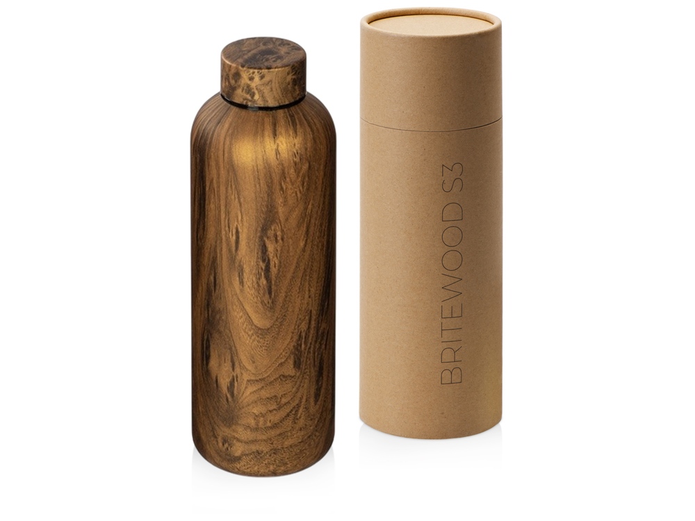 Вакуумная термобутылка Britewood S3, 500 мл, крафтовый тубус с логотипом компании - отличный способ заявить вашу корпоративную идентичность.