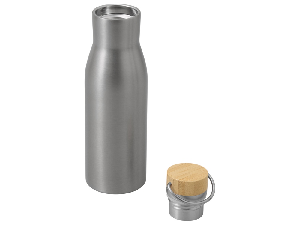 Компания «Эклектика BY» осуществляет нанесение логотипа на сувенирную продукцию: Вакуумная термобутылка с бамбуковой крышкой Klas, 500 мл, серебристый. Арт. 438996