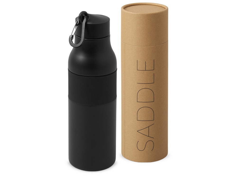Вакуумная термобутылка с карабином Saddle, 530 мл, черный с логотипом компании - отличный способ заявить вашу корпоративную идентичность.