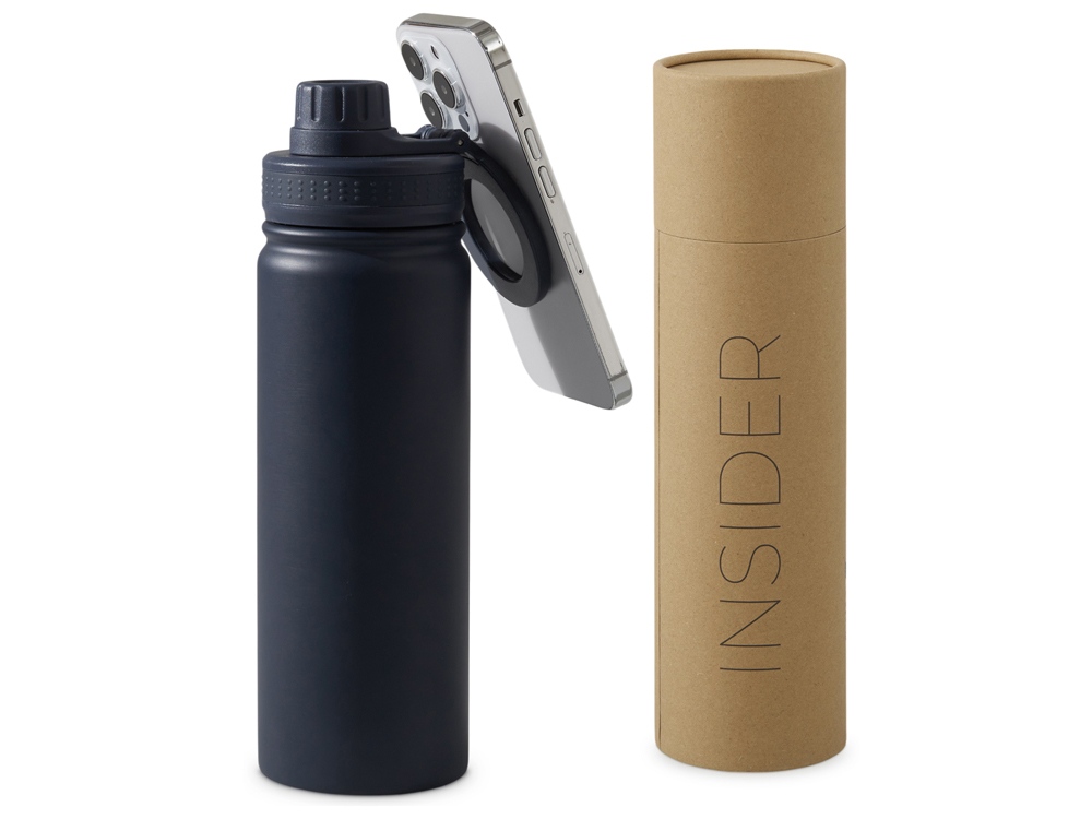 Вакуумная термобутылка с magsafe-держателем INSIDER, 600 мл, синий с логотипом компании - отличный способ заявить вашу корпоративную идентичность.