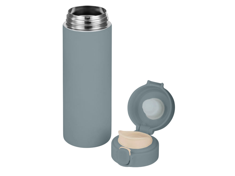 Компания «Эклектика BY» осуществляет нанесение логотипа на сувенирную продукцию: Вакуумная термокружка Waterline c кнопкой Guard, 400 мл, тубус, антрацит. Арт. 443412