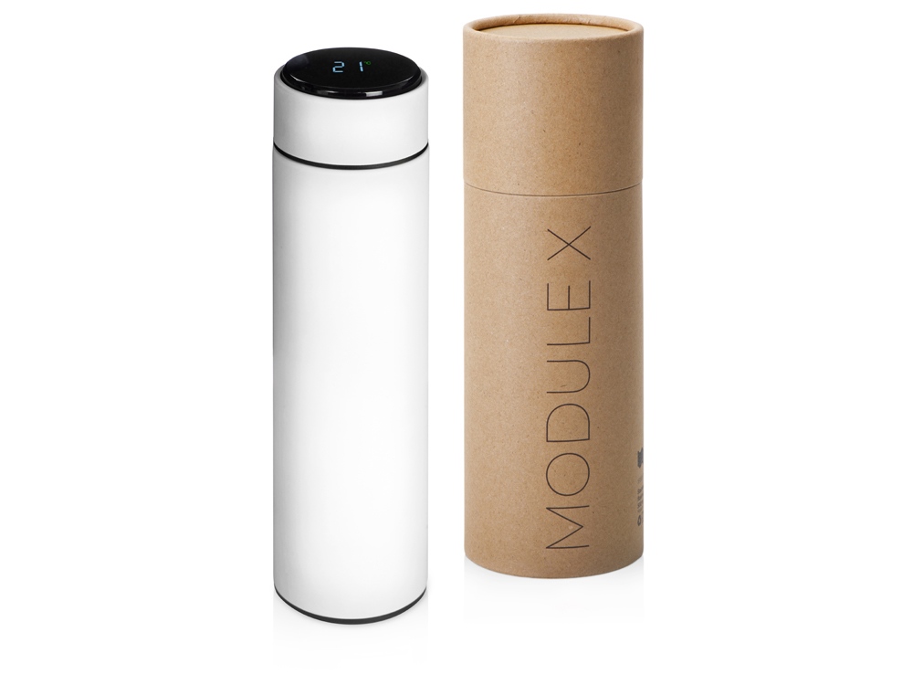 Вакуумный термос Module X с индикатором температуры, 500 мл, тубус, белый с логотипом компании - отличный способ заявить вашу корпоративную идентичность.