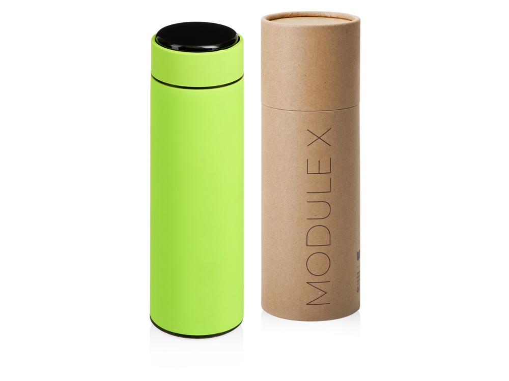 Вакуумный термос Module X с индикатором температуры, 500 мл, тубус, зеленое яблоко 375C с логотипом компании - отличный способ заявить вашу корпоративную идентичность.