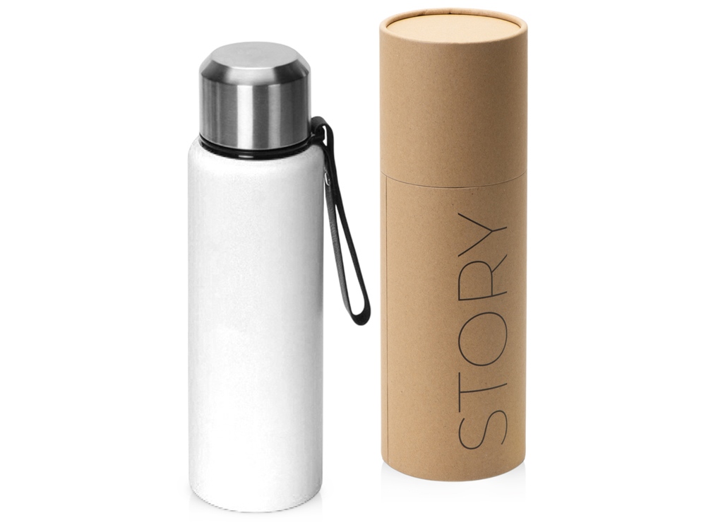 Вакуумный термос Story c покрытием powder, тубус, белый с логотипом компании - отличный способ заявить вашу корпоративную идентичность.