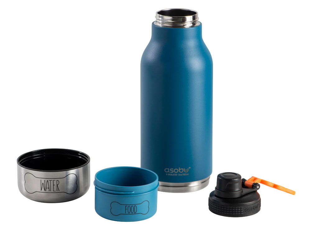 Главная ->Корпоративные подарки и рекламные сувениры на складе -> Термос и бутылка -> Термосы -> Вакуумный термос Buddy 3-в-1 со съемными мисками для питомцев, 1000 мл, синий