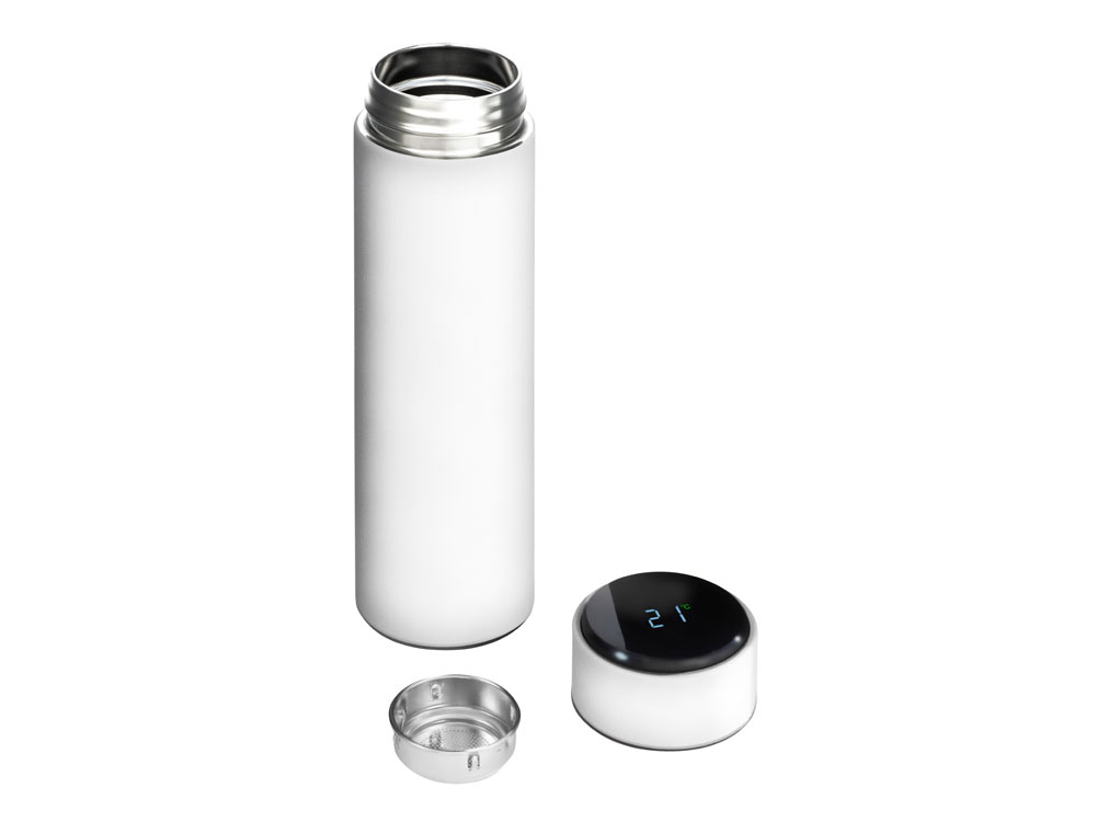 Вакуумный термос Module X с индикатором температуры, 500 мл, тубус, белый с логотипом компании - отличный способ заявить вашу корпоративную идентичность.