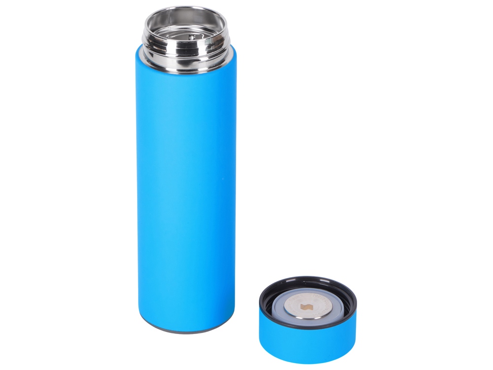 Вакуумный термос Module X с индикатором температуры, 500 мл, тубус, голубой 3538C с логотипом компании - отличный способ заявить вашу корпоративную идентичность.
