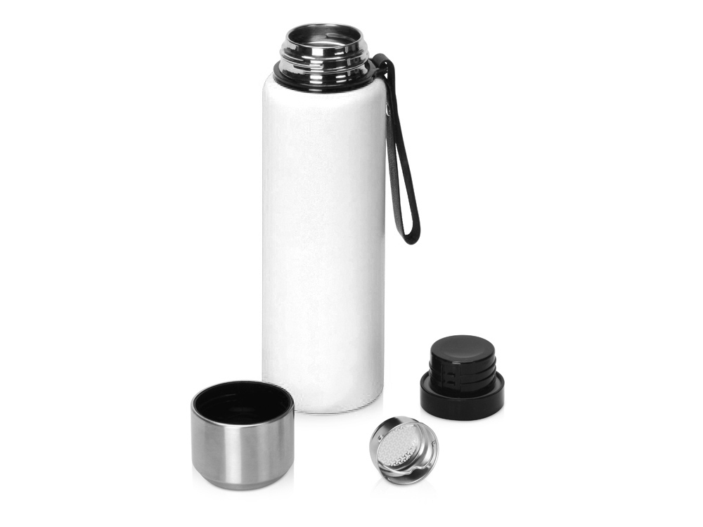 Вакуумный термос Story c покрытием powder, тубус, белый с логотипом компании - отличный способ заявить вашу корпоративную идентичность.