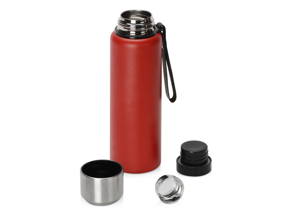 Вакуумный термос Story c покрытием powder, тубус, красный с логотипом компании - отличный способ заявить вашу корпоративную идентичность.