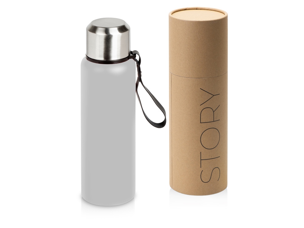 Вакуумный термос Story, тубус, средне-серый с логотипом компании - отличный способ заявить вашу корпоративную идентичность.
