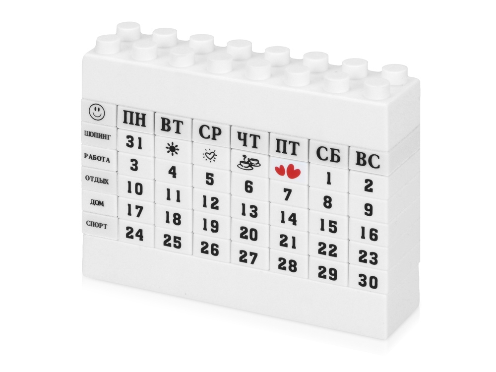 Вечный календарь в виде конструктора, белый с логотипом компании - отличный способ заявить вашу корпоративную идентичность.