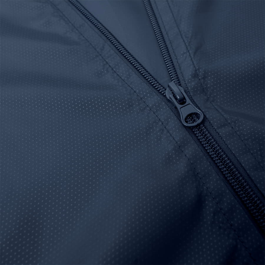 Ветровка COLIN выполнена из ветро- и влагозащитной ткани "дюспо" с мягкой и гладкой на ощупь поверхностью. Ткань тонкая, эластичная и невесомая - её плотность всего лишь 58 г/м2. Ветровка легкая и не займет много места в багаже. Она надёжно сохраняет тепло, но не создаёт парникового эффекта.