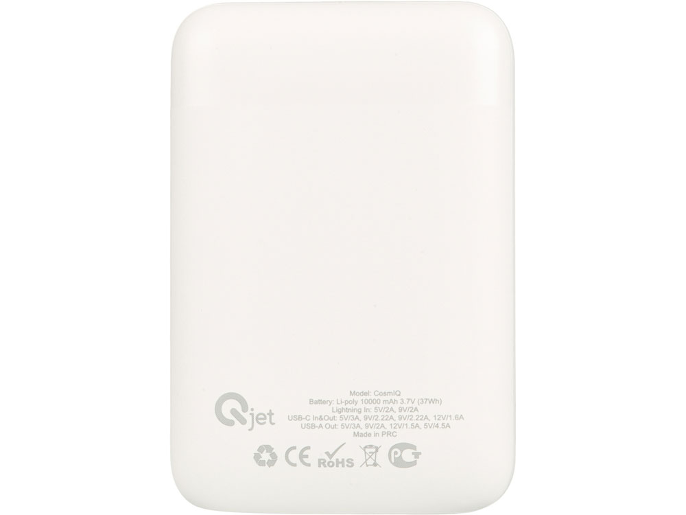 Внешний аккумулятор с быстрой зарядкой QC/PD CosmIQ, 10000 мАч, белый с логотипом компании - отличный способ заявить вашу корпоративную идентичность.