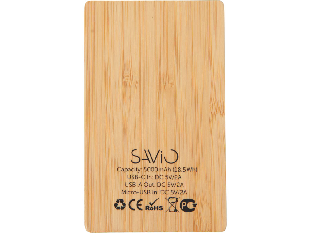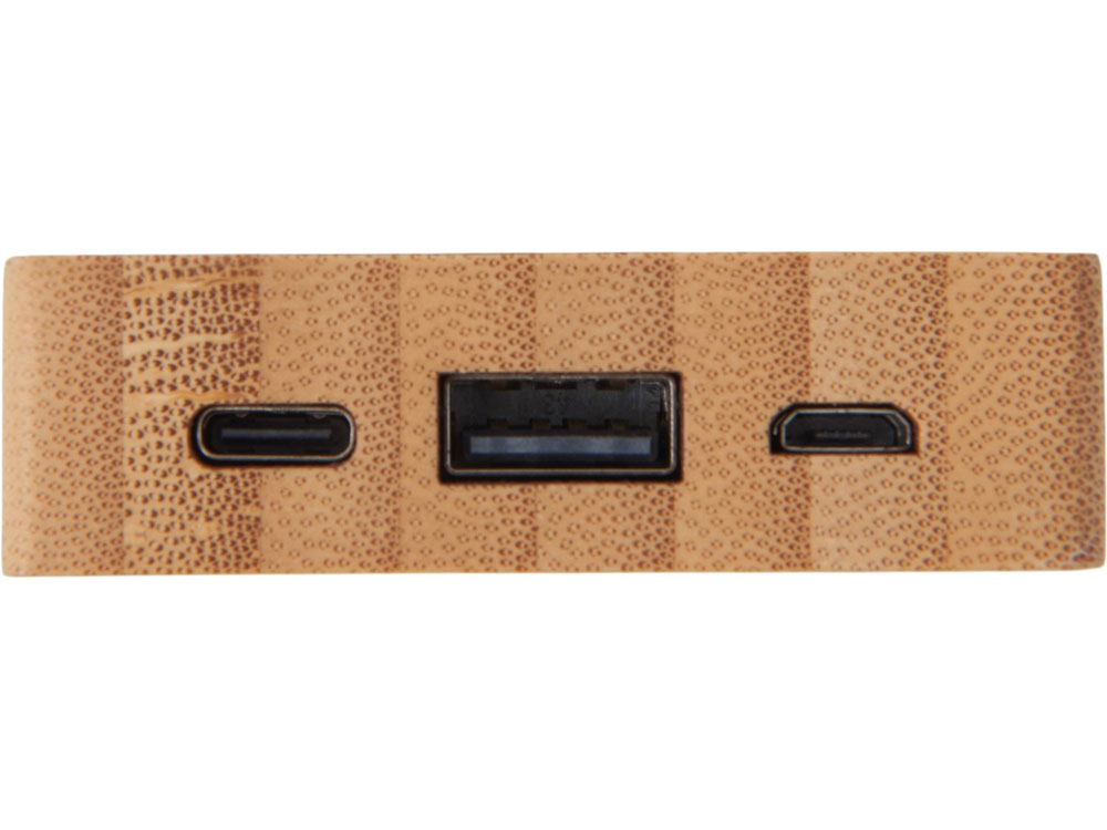 Компактный и стильный внешний аккумулятор ёмкостью 5?000 мАч — идеальный спутник для повседневных дел и коротких поездок. Его корпус сочетает в себе натуральный бамбук и переработанный ABS-пластик, что делает устройство не только более экологичным, но и визуально премиальным. Особый шарм ему придаёт встроенная панель с белой подсветкой с возможностью нанесения логотипа — ваш бренд или инициалы мягко засветятся в темноте, привлекая внимание и подчеркивая индивидуальность. Это не просто power bank — это экосознательный аксессуар, который заряжает ваши гаджеты и вдохновляет окружающих.