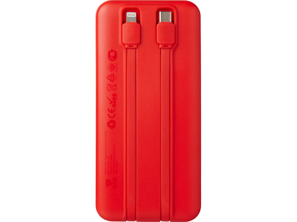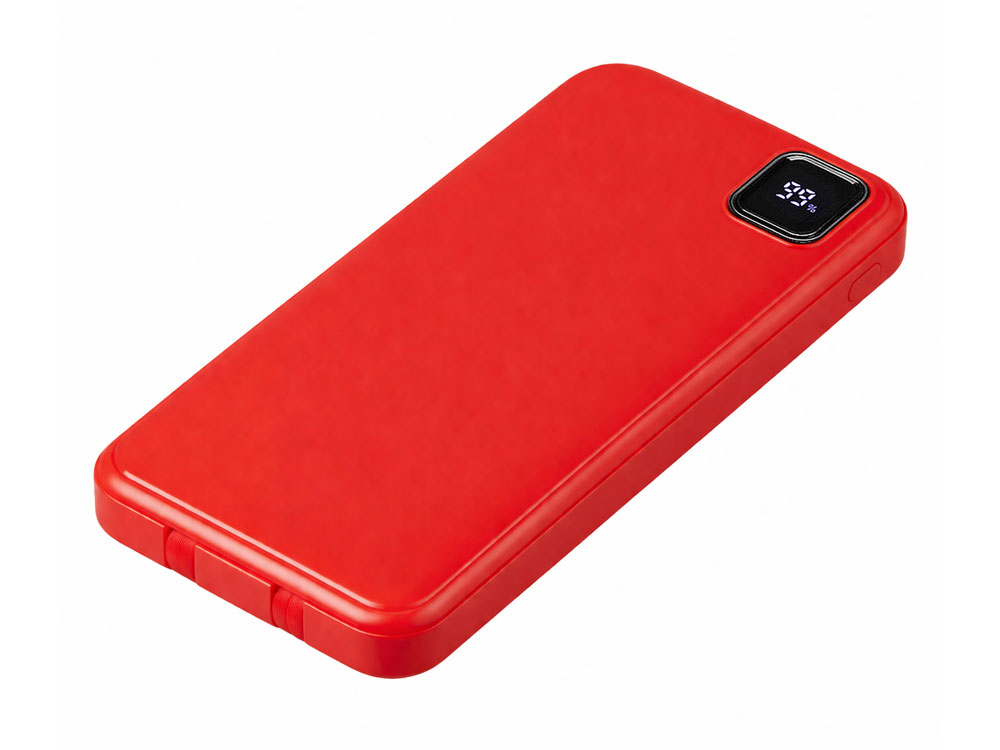 Внешний аккумулятор со встроенными кабелями Фрэйм, 10000мач, красный с логотипом компании - отличный способ заявить вашу корпоративную идентичность.
