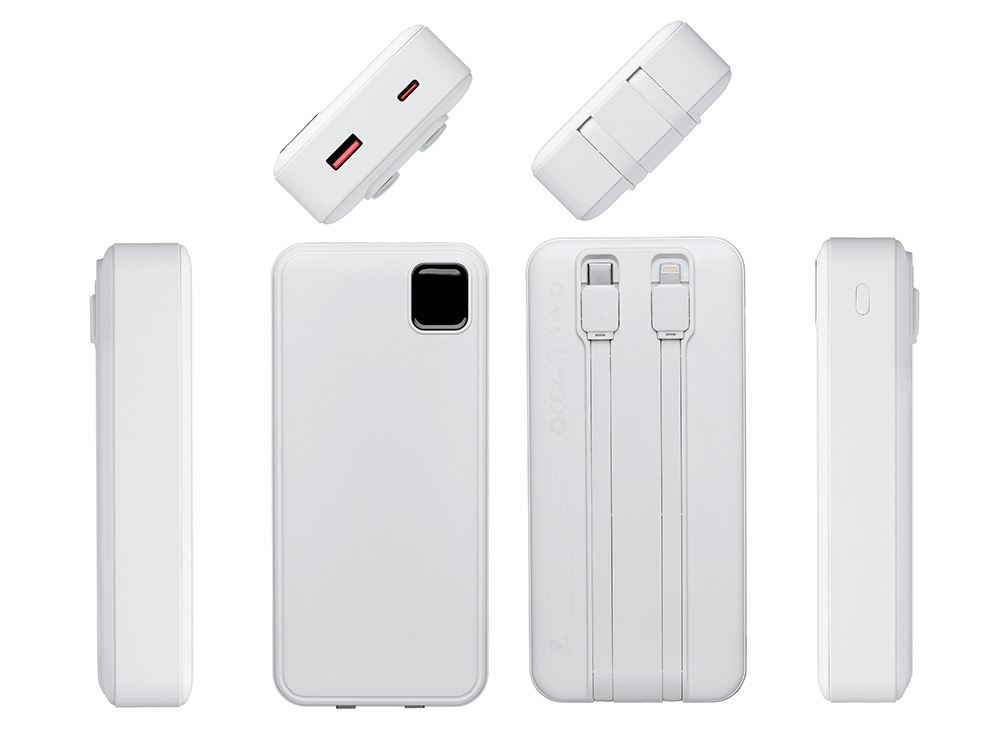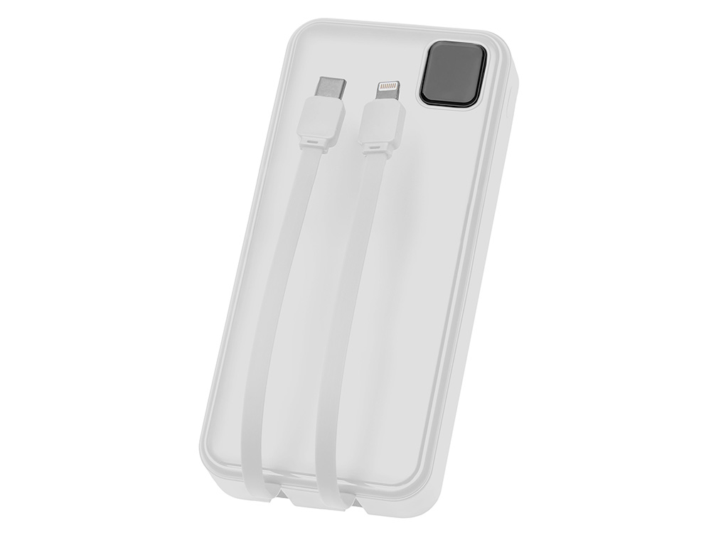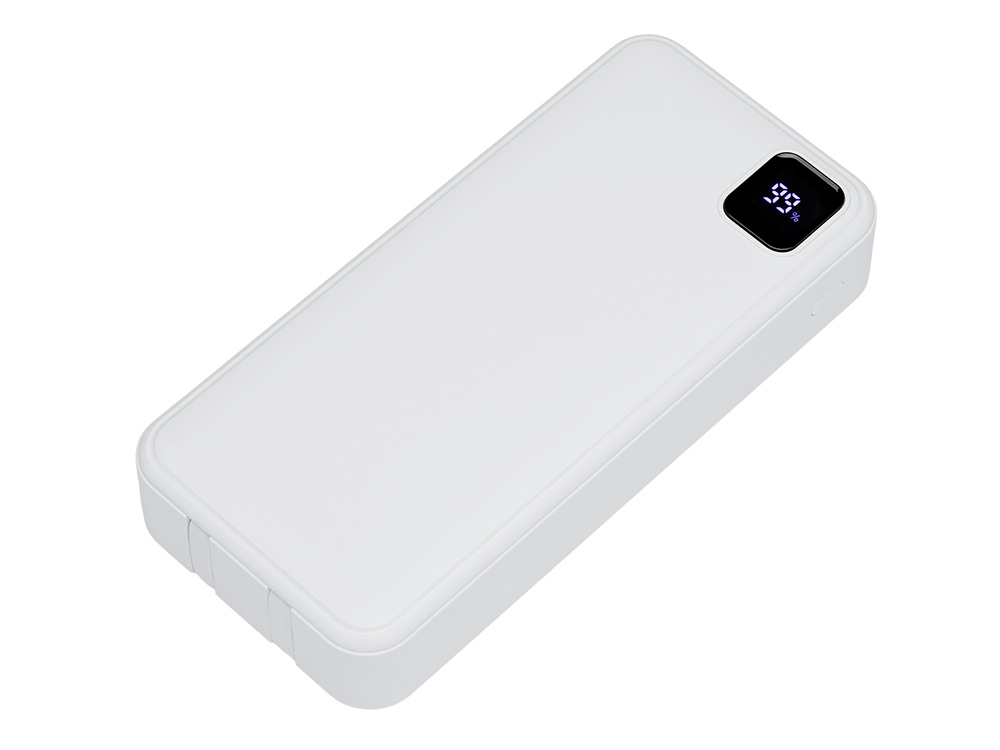 Внешний аккумулятор со встроенными кабелями Фрэйм Про, быстрая зарядка, 20000мач, белый