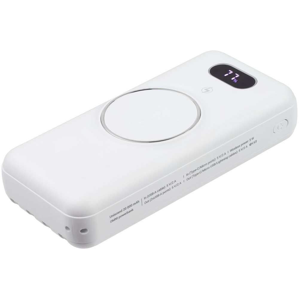 Внешний аккумулятор Omni XL 20000 мАч, белый с логотипом компании - отличный способ заявить вашу корпоративную идентичность.