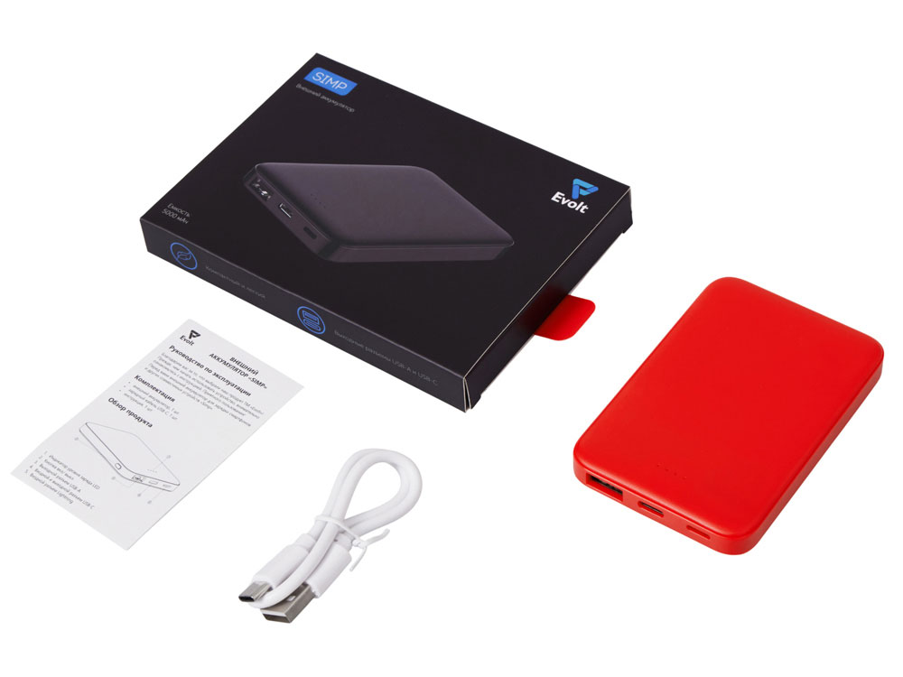 Компания «Эклектика BY» осуществляет нанесение логотипа на сувенирную продукцию: Внешний аккумулятор Simp, 5000 мАч, красный. Арт. 448828