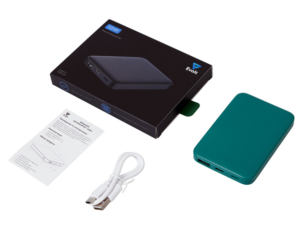 Компания «Эклектика BY» осуществляет нанесение логотипа на сувенирную продукцию: Внешний аккумулятор Simp, 5000 мАч, зеленый. Арт. 448829