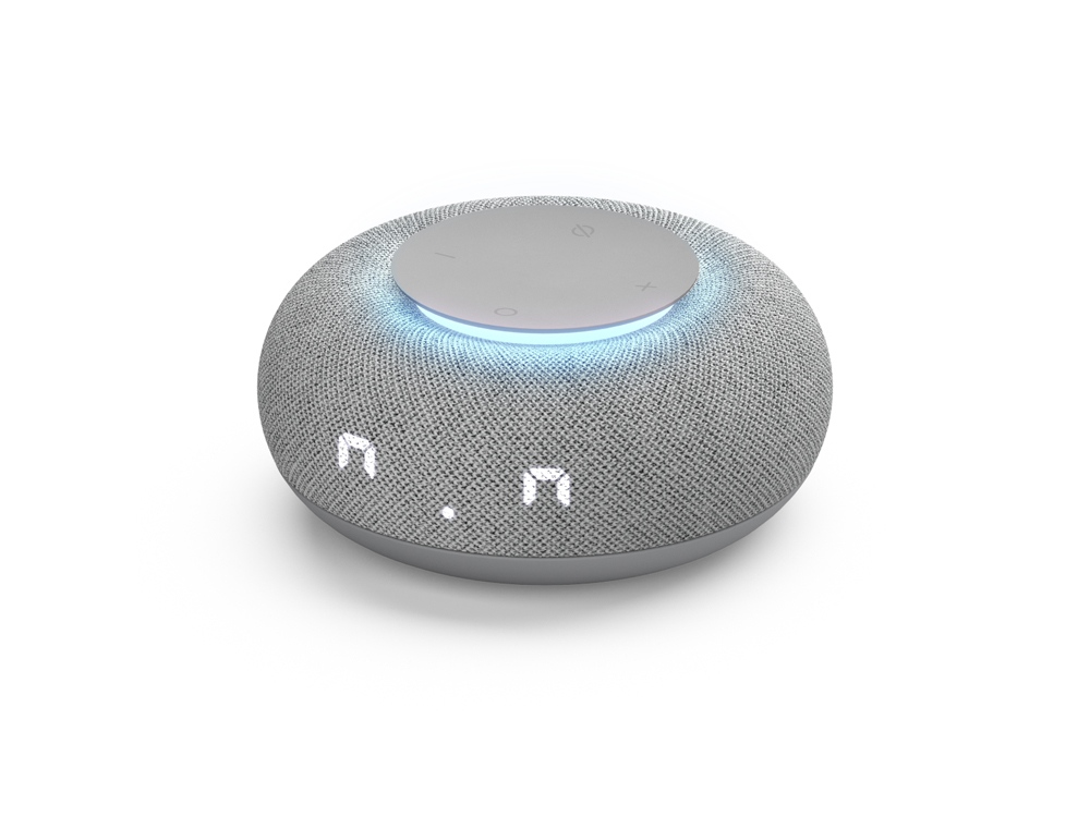 Компания «Эклектика BY» осуществляет нанесение логотипа на сувенирную продукцию: Умная колонка VK Капсула Мини с голосовым помощником Марусей, светлый серый. Арт. 426758