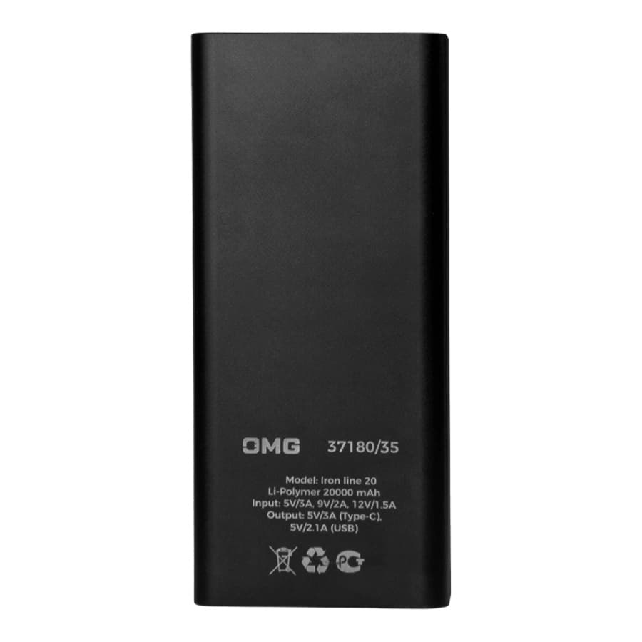 Универсальный аккумулятор Iron line 20 (20000 мАч), металл, черный, 14,7х6.6х2,7 см