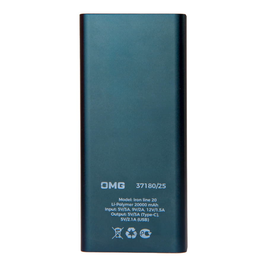 Универсальный аккумулятор Iron line 20 (20000 мАч), металл, синий, 14,7х6.6х2,7 см