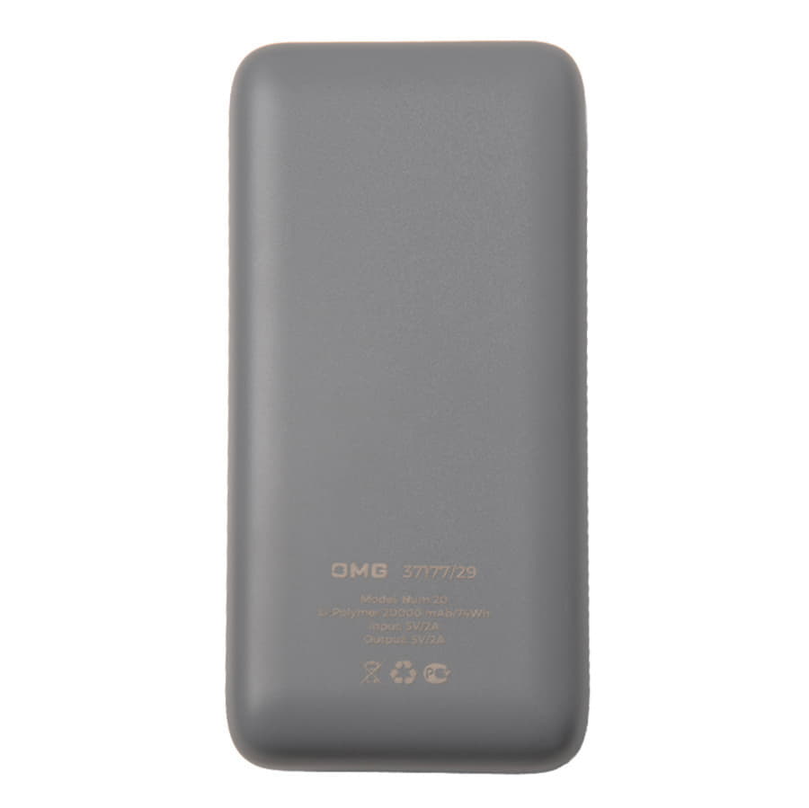 Главная ->Корпоративные подарки и рекламные сувениры на складе -> Сувенирная электроника -> Зарядные устройства Power Bank -> Универсальный аккумулятор Num 20 (20000 мАч), серый, 14,6х7.0х2,75 см