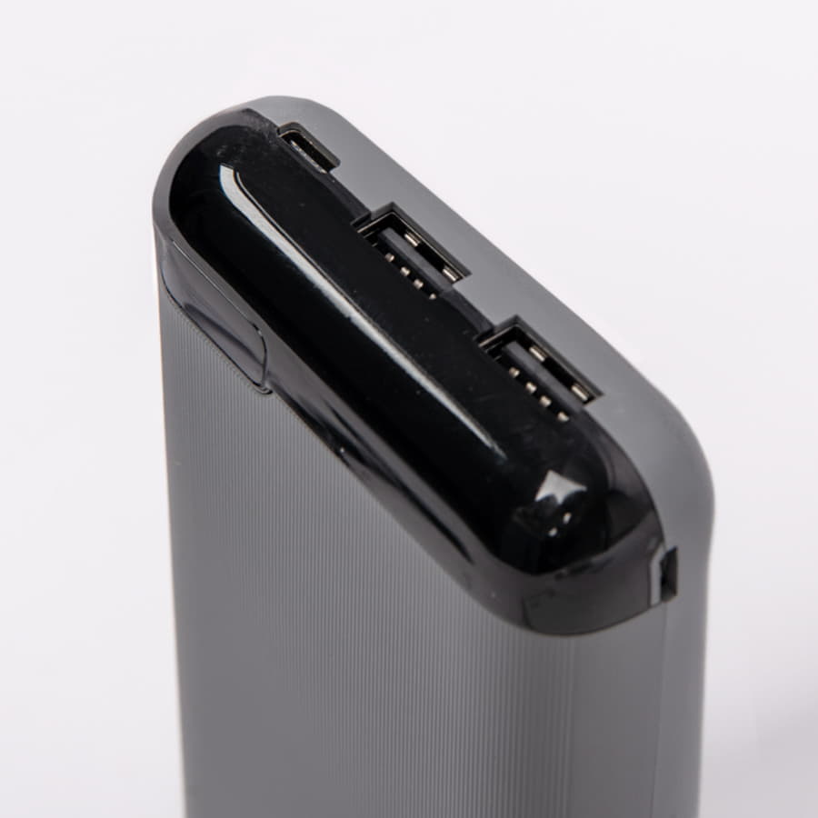 Внешний аккумулятор имеет пластиковый матовый корпус с ЖК-дисплеем, который покажет оставшийся уровень заряда в любой момент. Пауэрбанк заряжается через универсальный порт Type-C или Micro-USB и отдает энергию через два классических порта USB. Благодаря встроенному в корпус дисплею, следить за расходом батареи стало удобнее. Заряд показывается в процентах.