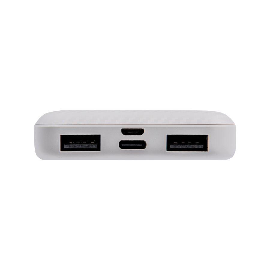 Внешний аккумулятор имеет пластиковый матовый корпус. Пауэрбанк заряжается через универсальный порт Type C или Micro-USB и отдает энергию через два классических порта USB. Благодаря встроенному в корпус индикатору уровня заряда батареи, удобно следить за расходом батареи.