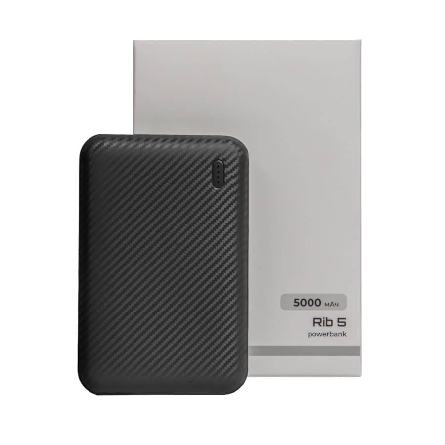 Главная ->Корпоративные подарки и рекламные сувениры на складе -> Сувенирная электроника -> Зарядные устройства Power Bank -> Универсальный аккумулятор Rib 5 (5000 мАч), черный, 9,8х6.3х1,4 см
