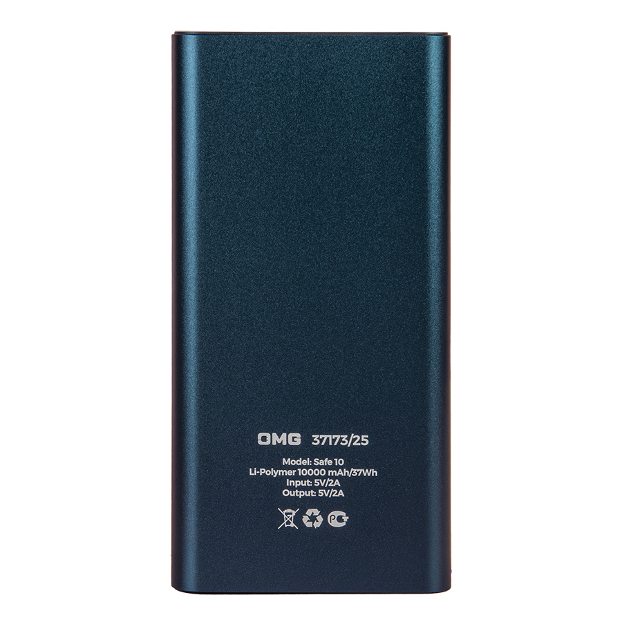 Главная ->Корпоративные подарки и рекламные сувениры на складе -> Сувенирная электроника -> Зарядные устройства Power Bank -> Универсальный аккумулятор Safe 10 (10000 мАч), синий, 13,8х6.8х1,4 см
