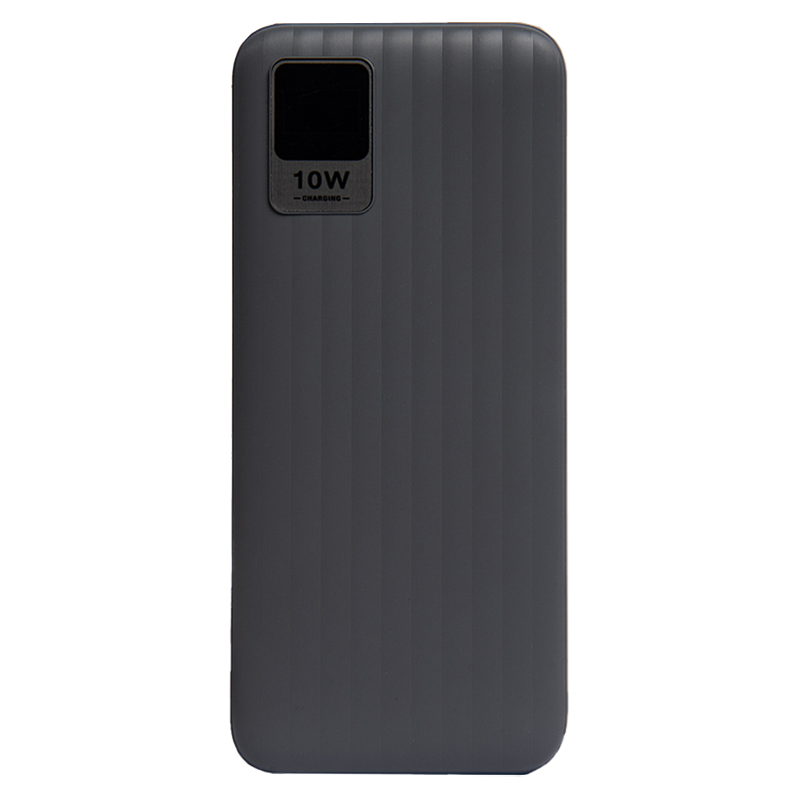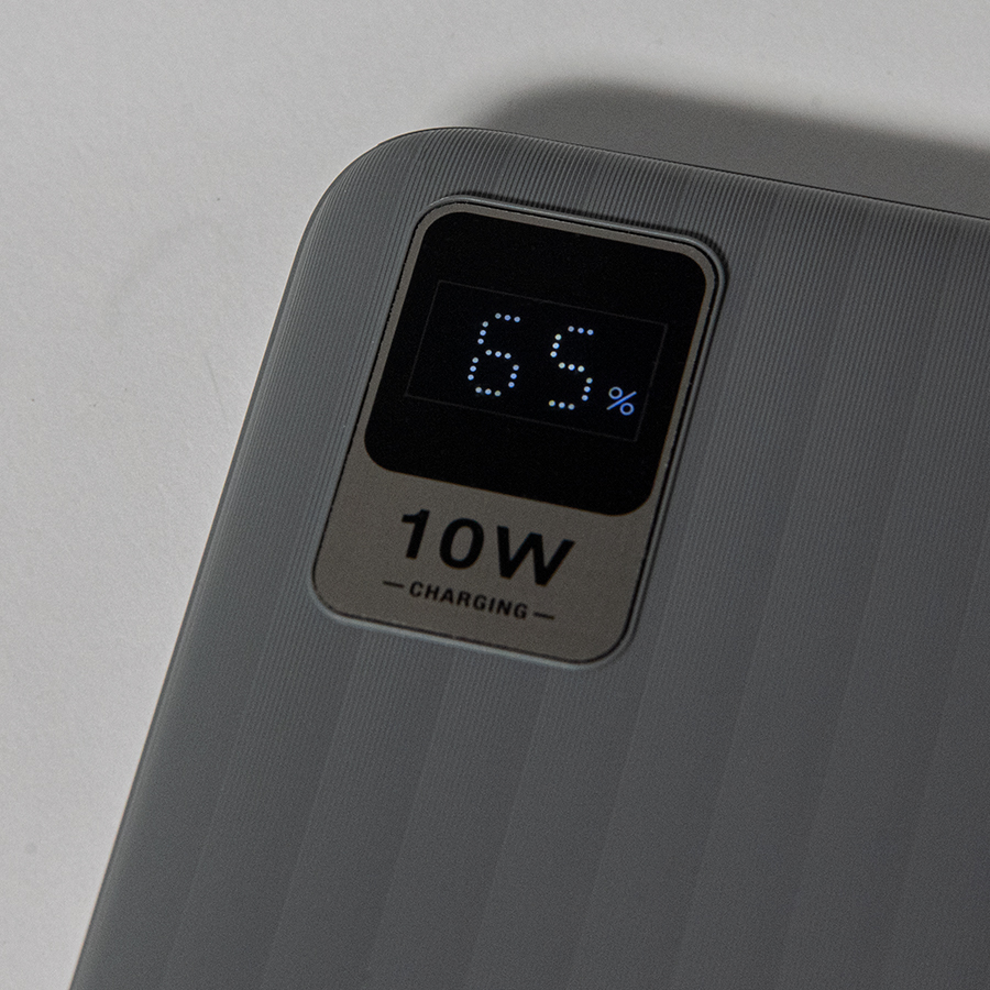 Внешний аккумулятор имеет пластиковый матовый корпус с ЖК-дисплеем, который покажет оставшийся уровень заряда в любой момент. Пауэрбанк заряжается через универсальный порт Type-C или Micro-USB и отдает энергию через два классических порта USB. Благодаря встроенному в корпус дисплею, следить за расходом батареи стало удобнее. Заряд показывается в процентах.