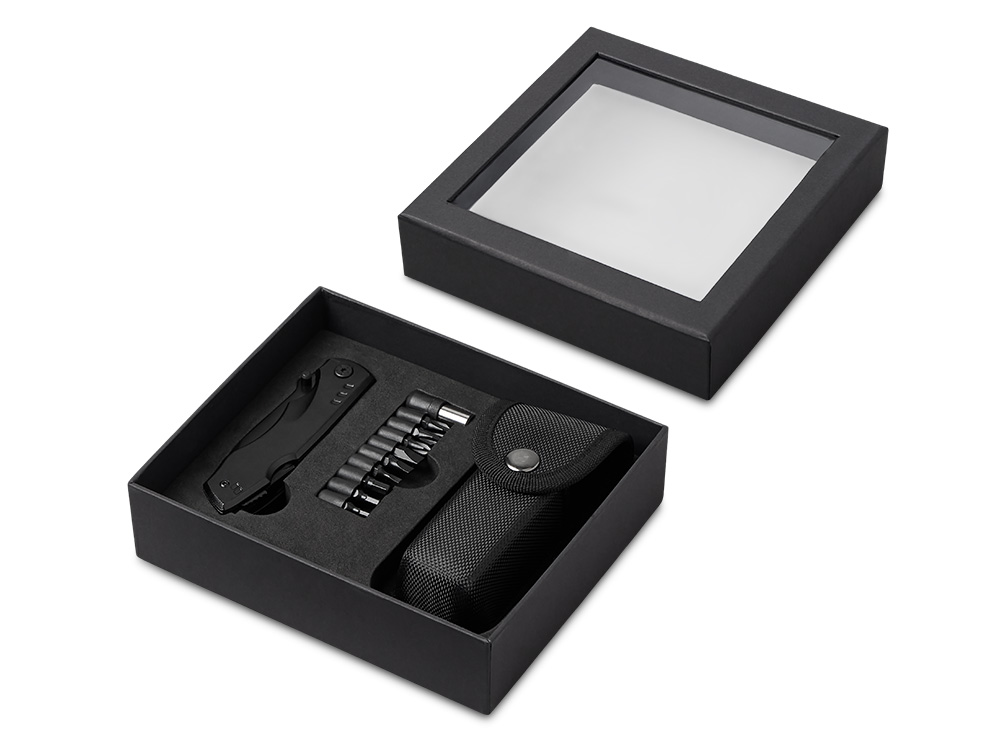 Универсальный мультитул с битами в подарочной упаковке с окном Шэйп , черный