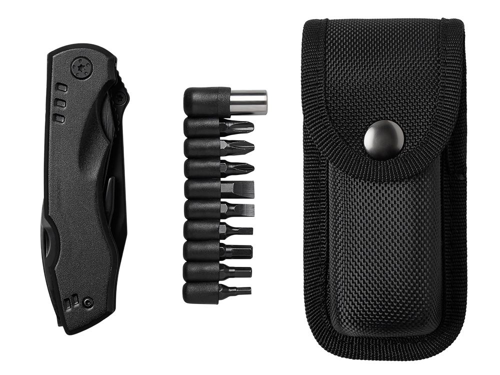 • Премиальная комплектация: текстурированный чехол для мультитула и бит в комплекте