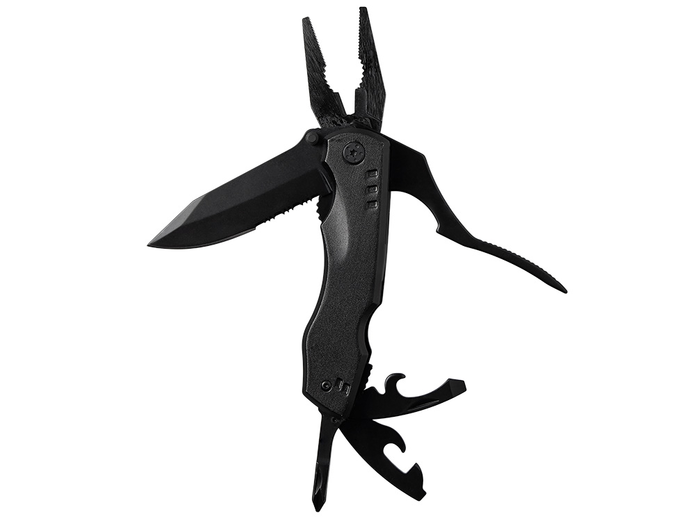 • Максимум пользы в минимуме места: большие пассатижи, средний нож, набор бит и другие полезные инструменты