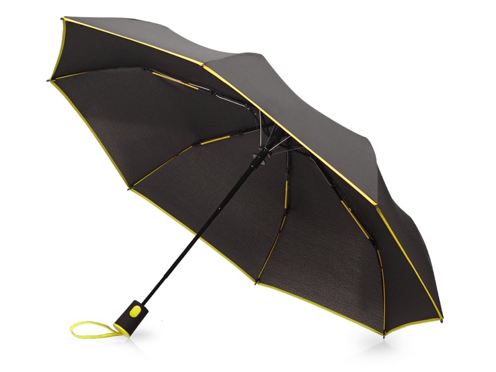 Главная ->Корпоративные подарки и рекламные сувениры на складе -> Зонты -> Зонты складные -> Зонт-полуавтомат складной Motley с цветными спицами, черный/желтый