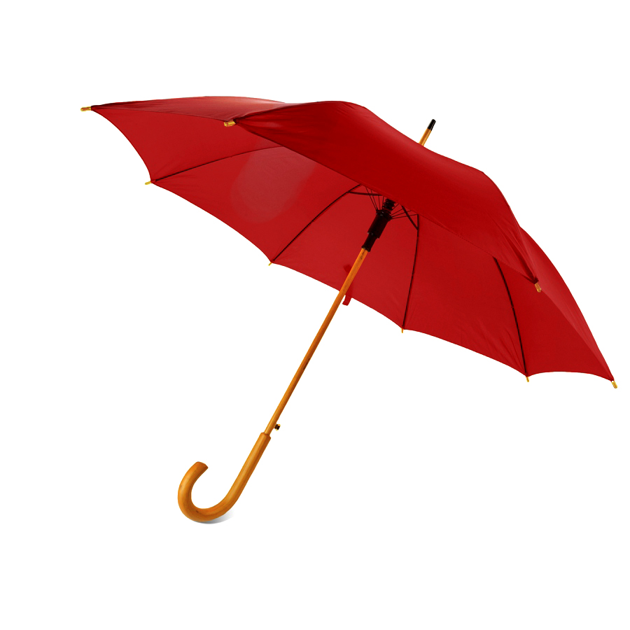 Полуавтоматический зонт, деревянная ручка и рама. Выполнен из качественных материалов. Поставляется без чехла. Цвет, максимально приближенный к пантону 186С