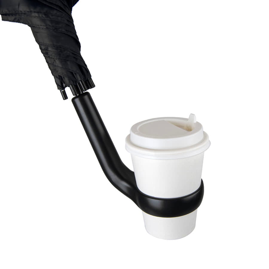 Ручка с держателем подходит для кофейного стакана или небольшой термокружки. Эта полезная особенность позволит вам в процессе использования зонта освободить руку, чтобы ответить на звонок, например.