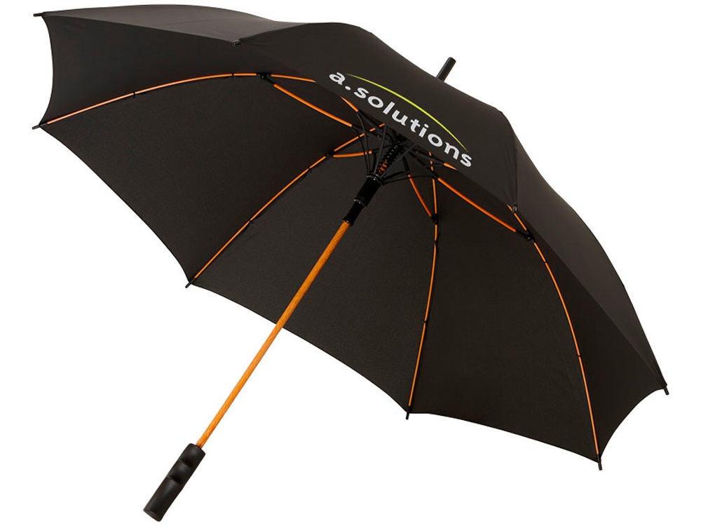 Главная ->Корпоративные подарки и рекламные сувениры на складе -> Зонты -> Зонты-трость -> Зонт-трость Spark полуавтомат 23, черный/оранжевый