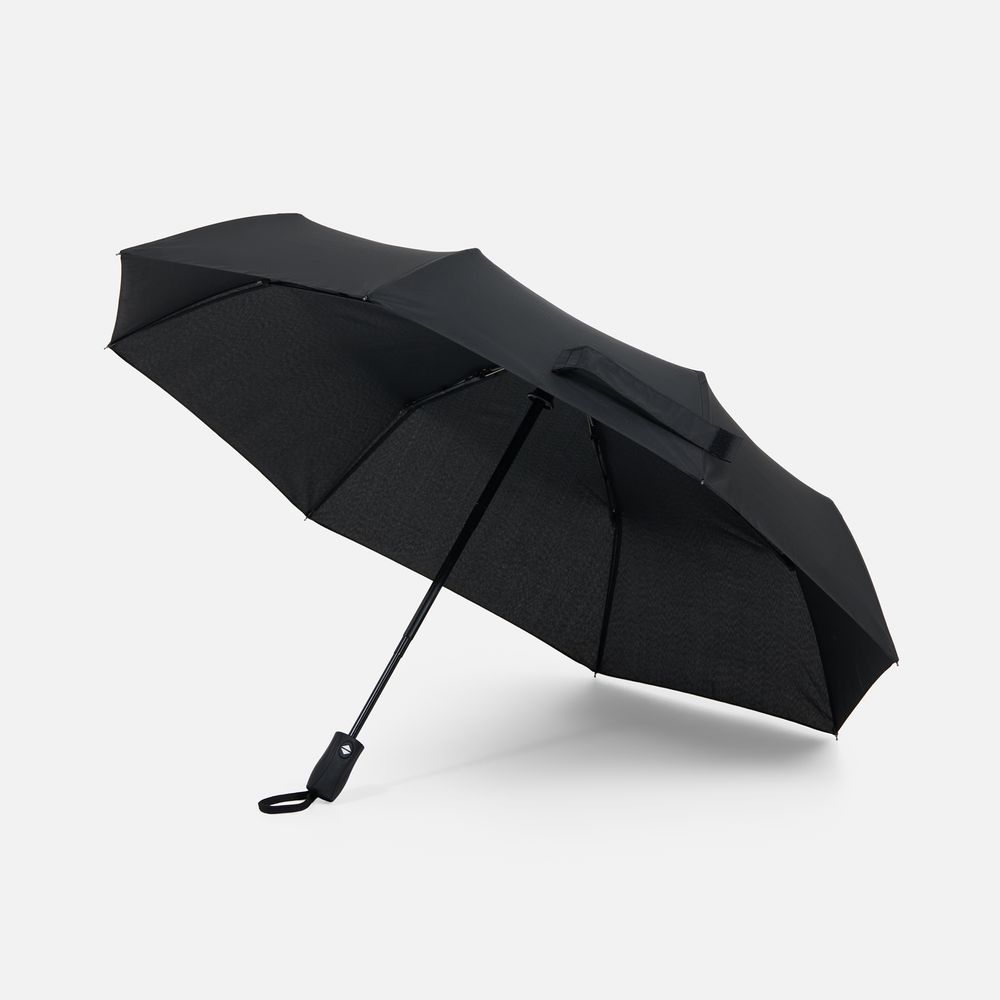 Зонт складной Brellix, черный с логотипом компании - отличный способ заявить вашу корпоративную идентичность.