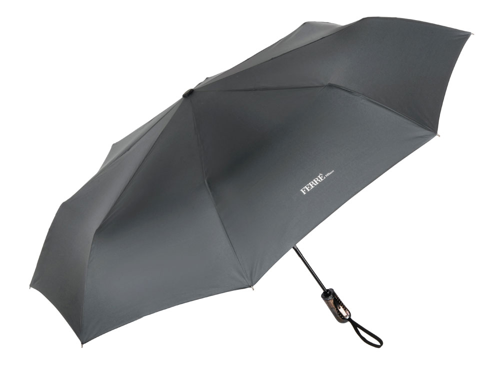 Зонт складной автоматический Ferre Milano, серый с логотипом компании - отличный способ заявить вашу корпоративную идентичность.