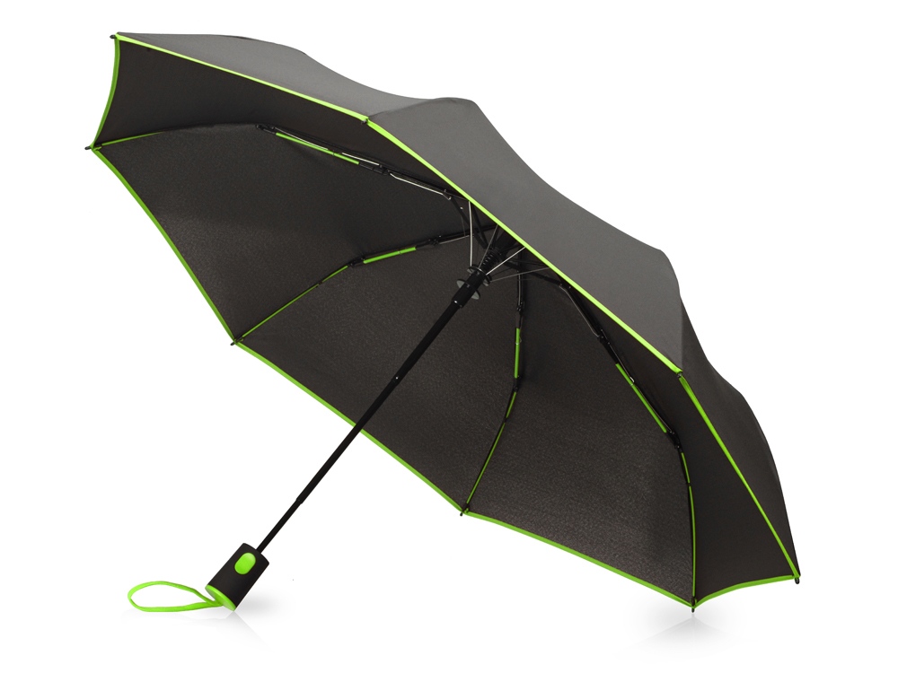 Главная ->Корпоративные подарки и рекламные сувениры на складе -> Зонты -> Зонты складные -> Зонт-полуавтомат складной Motley с цветными спицами, черный/зеленое яблоко