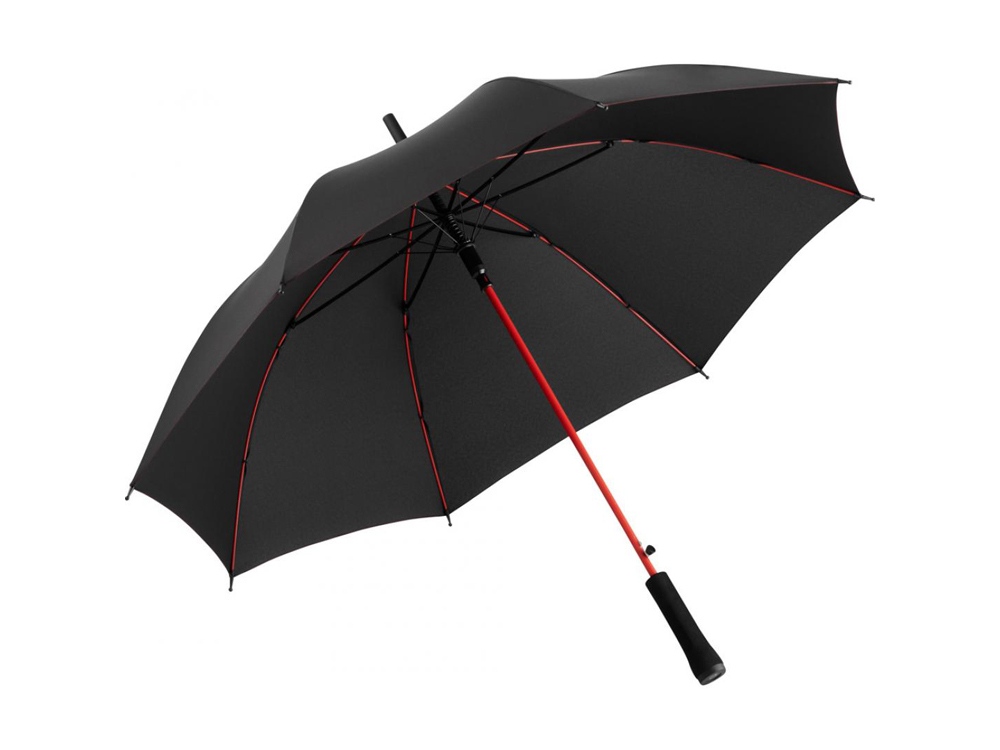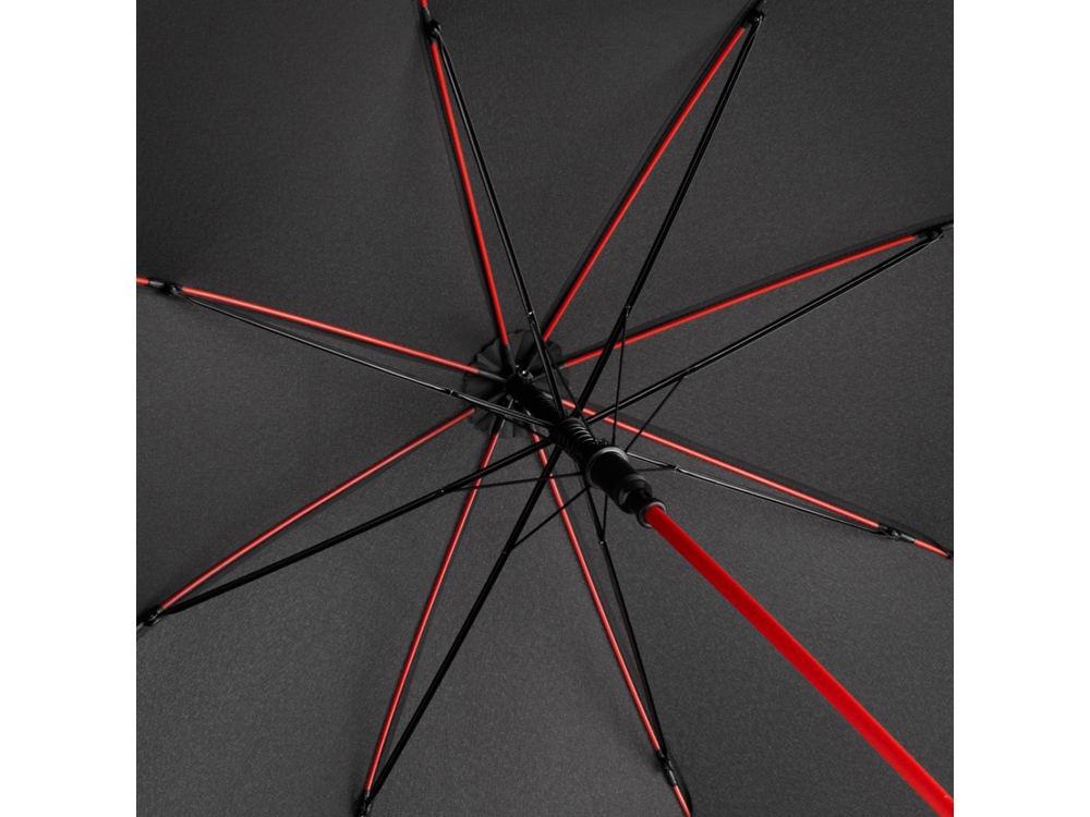 Зонт-трость 1084 Colorline с цветными спицами и куполом из переработанного пластика, черный/красный