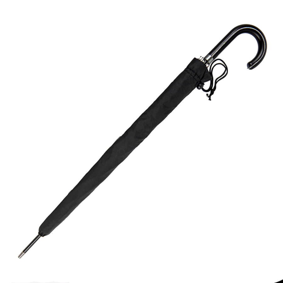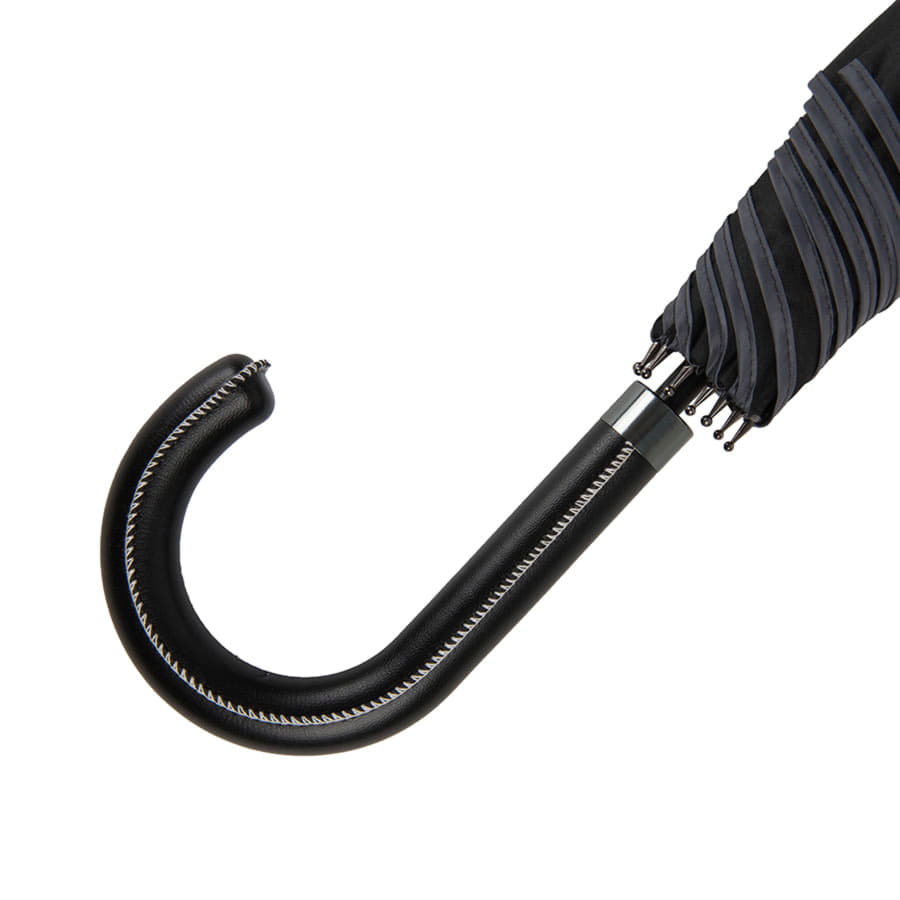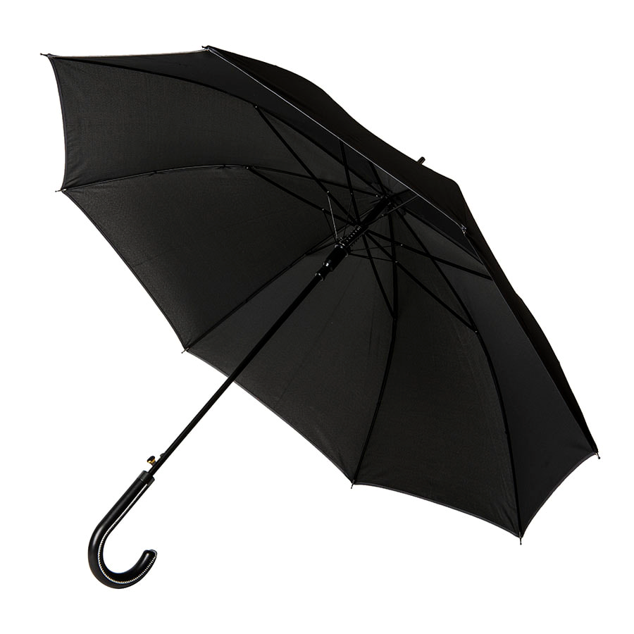 Зонт-трость OXFORD с ручкой из искусственной кожи ,чёрный, полуавтомат, 100% полиэстер