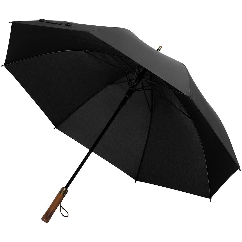 Зонт-трость Represent, черный с логотипом компании - отличный способ заявить вашу корпоративную идентичность.